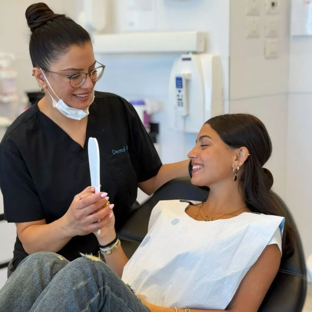 על שגרת תחזוקה אצל השיננית, הדרכה בשמירה על היגיינה ובדיקה תקופתית
